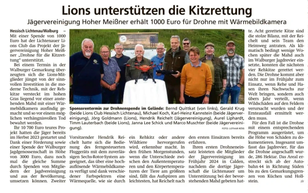 Spende für Kitzrettungsdrohne